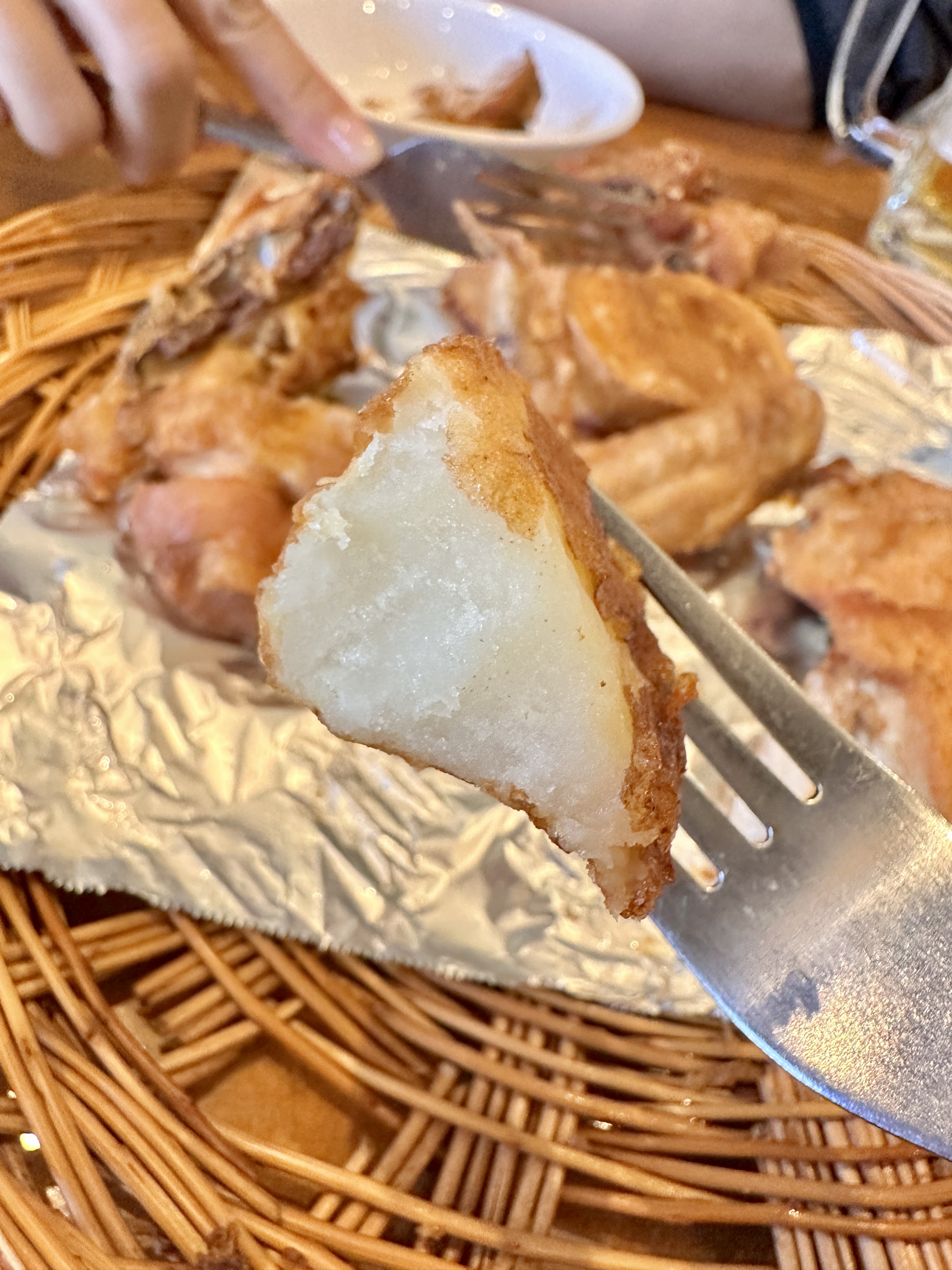 한 차례 쪄내어 큼직하게 튀긴 녀석이다 보니 구이나 찐의 느낌도, 튀김의 느낌도 동시에 나는 모양입니다. 치킨의 양은 적당했는데, 되려 녀석 때문에 배가 금방 찼던 것으로 기억합니다.