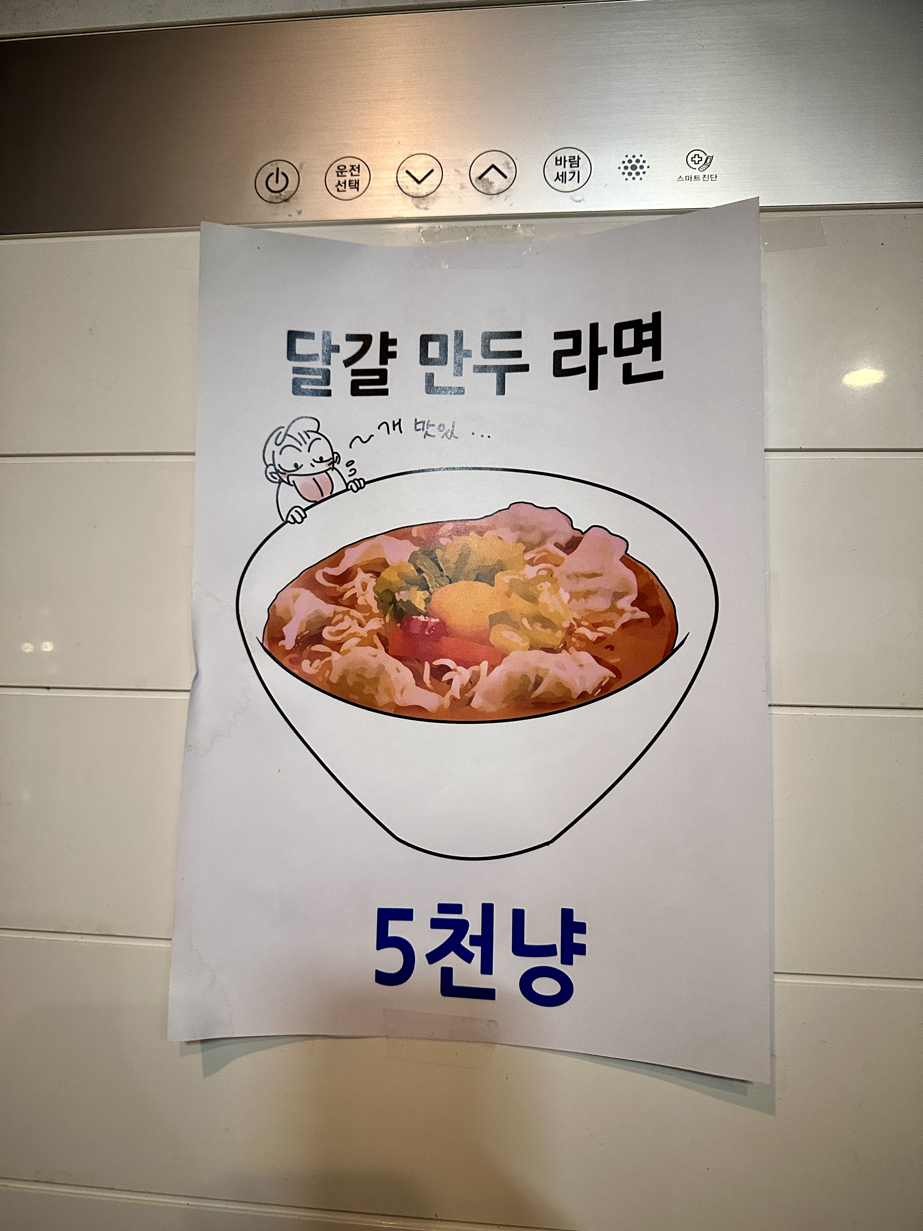 만화의 도시답게 출판 만화 캐릭터들이 종종 간판에서도 보이는 부천입니다. 이건 누군가의 서비스 컷일까요? 아니면 설마, 사장님의 솜씨일까요? 달걀만두란 표현이 좋아 국물을 더할 겸 주문했습니다. 늘 음식에선 달걀이 좀 더 둥글둥글하고 정감이 있다 생각됩니다.