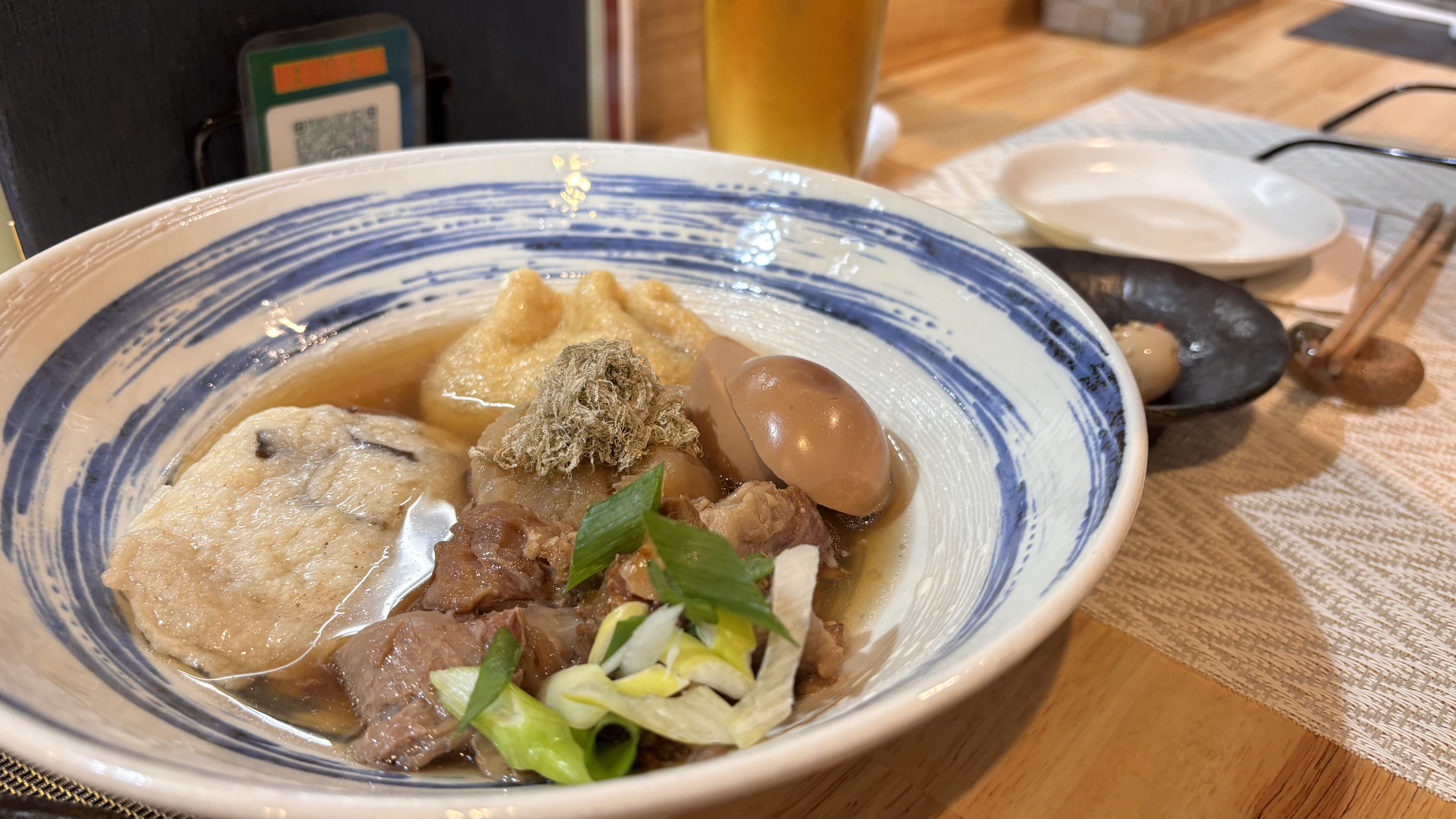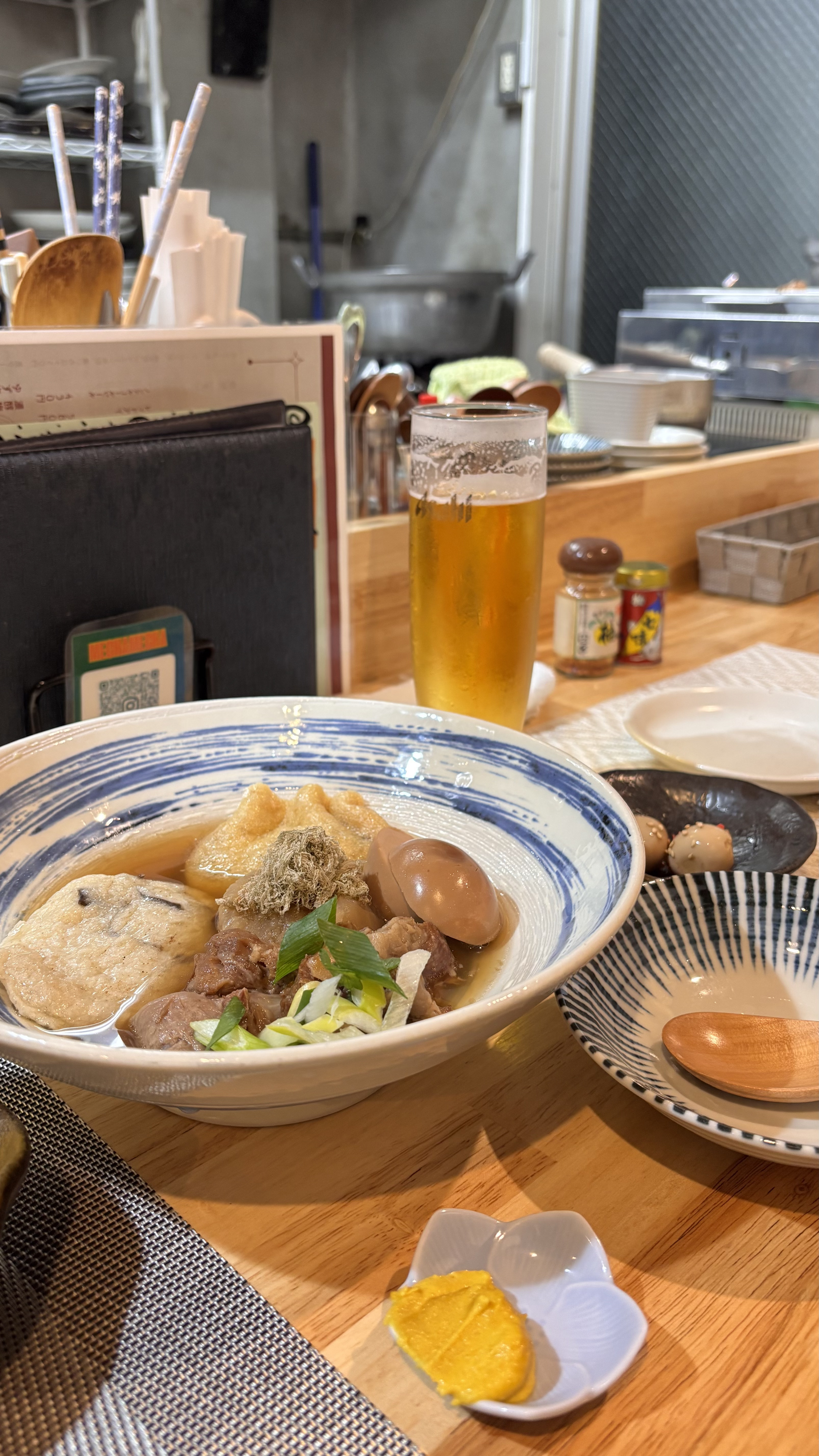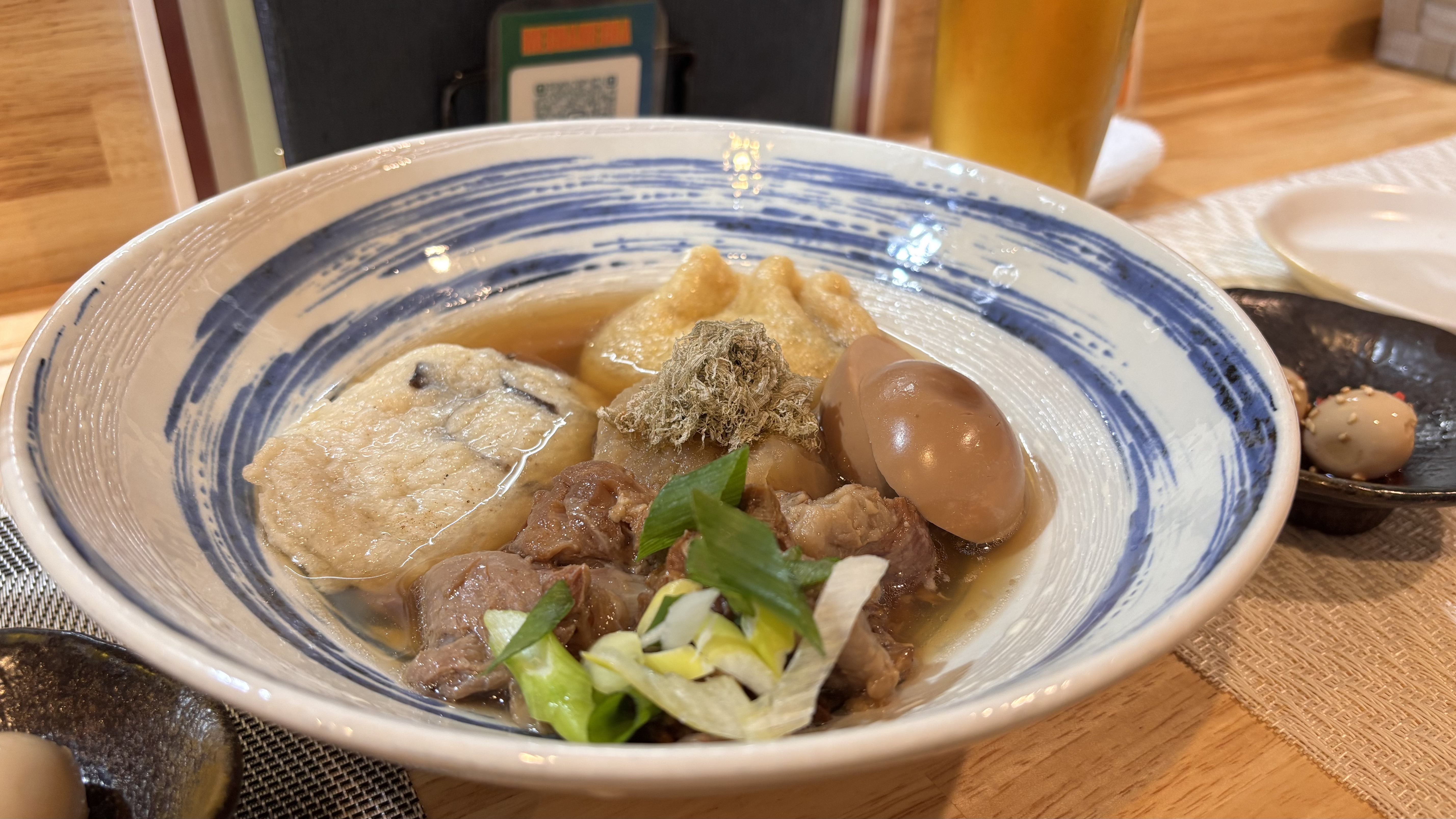 개인적으론 조림의 무를 참 좋아하기 때문에 오뎅의 집에선 기회가 된다면 늘 주문하곤 하는데, 늘 과했던 경우가 많았습니다. 허나 이곳은 딱 알맞은 느낌입니다. 여행의 기분이 한몫 조미를 거들었을지도 모르겠습니다. 여하튼 이는 담겨 나온 무, 유부, 계란, 스지 모두 균등해 국물맛을 함께 느끼기 참 좋았다고 하겠습니다.