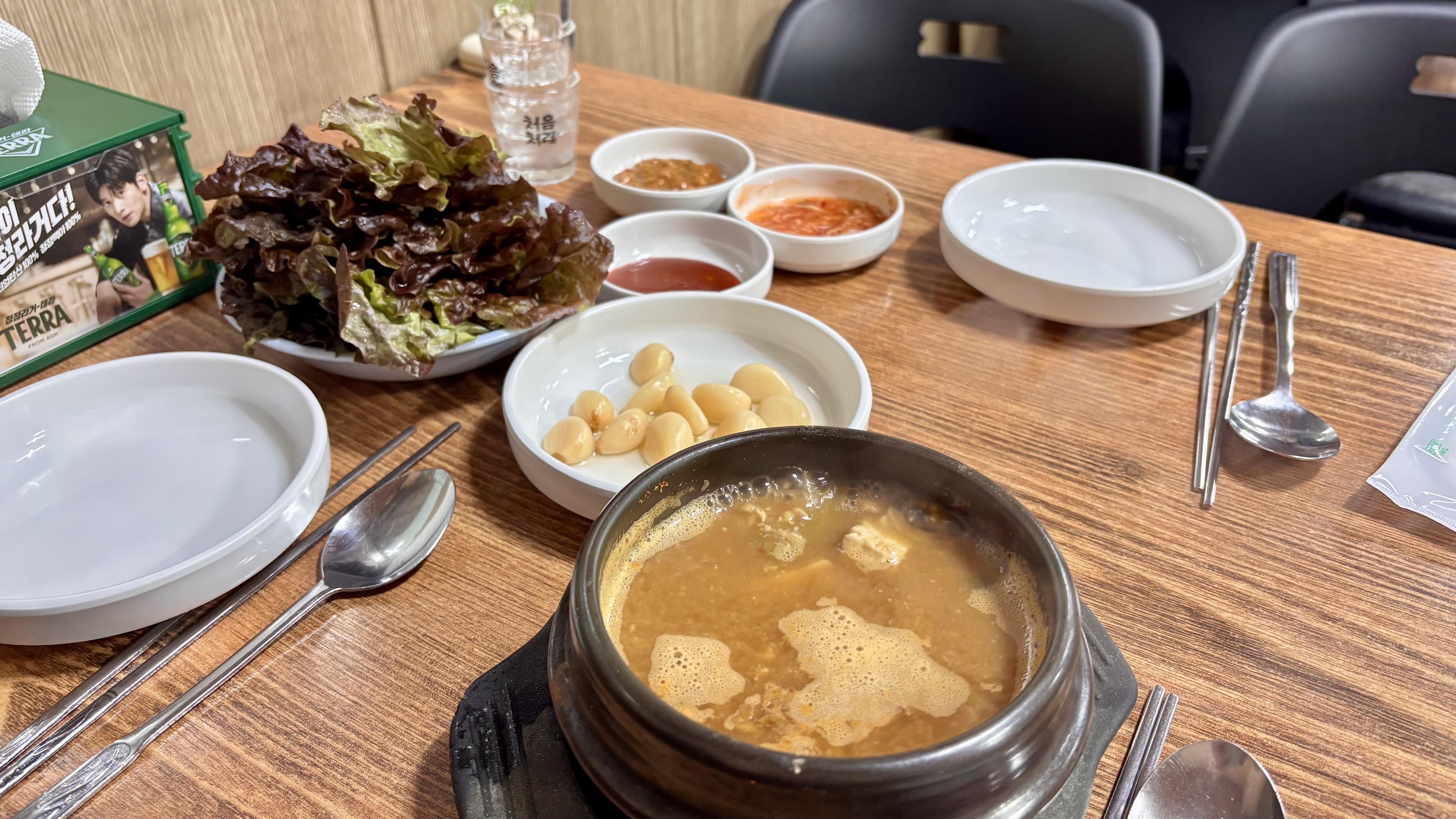 기본 제공 청국장입니다. 진한 향이 나쁘진 않았는데, 찬도 그렇게 나온 모양새가 조금 아쉬웠습니다. 장사가 잘되는 집의 루틴의 향도 느껴졌다고 할까요? 메마른 찬이라 표현하고 싶네요.