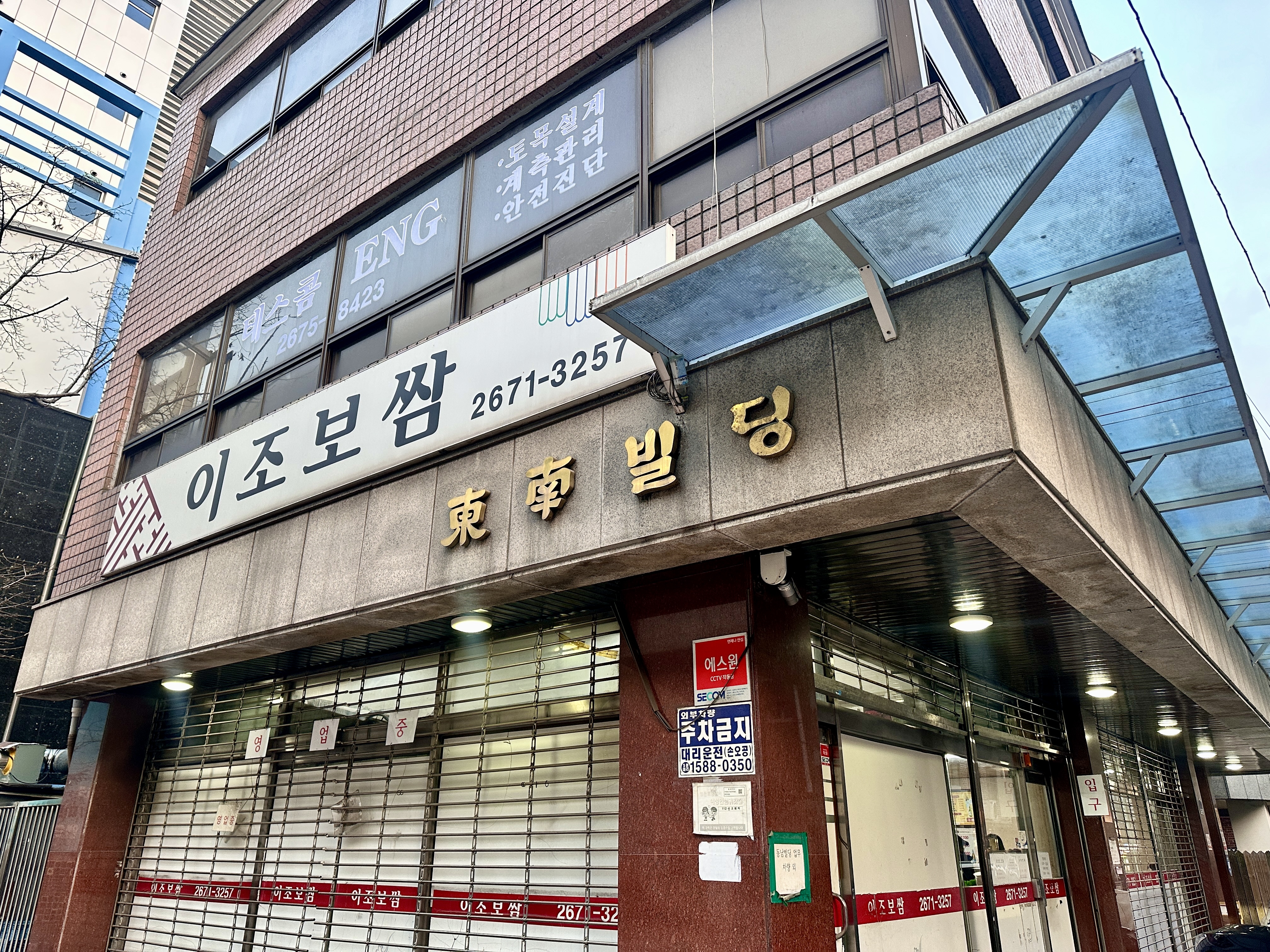 도착한 이초보쌈입니다. 브레이크타임 종료쯤 맞춰 찾았습니다. 사진으로 보이는 곳이 본관 같은데, 바로 옆으로 별관격 공간도 갖춘 듯했습니다. 상가 빌딩 1층에 자리 잡은 보쌈집이라 그럴까요? 외관과 내부의 꾸밈새와 특색은 덜 한 편이란 생각입니다. 조금 무미건조한 느낌도 들고 말이죠.
