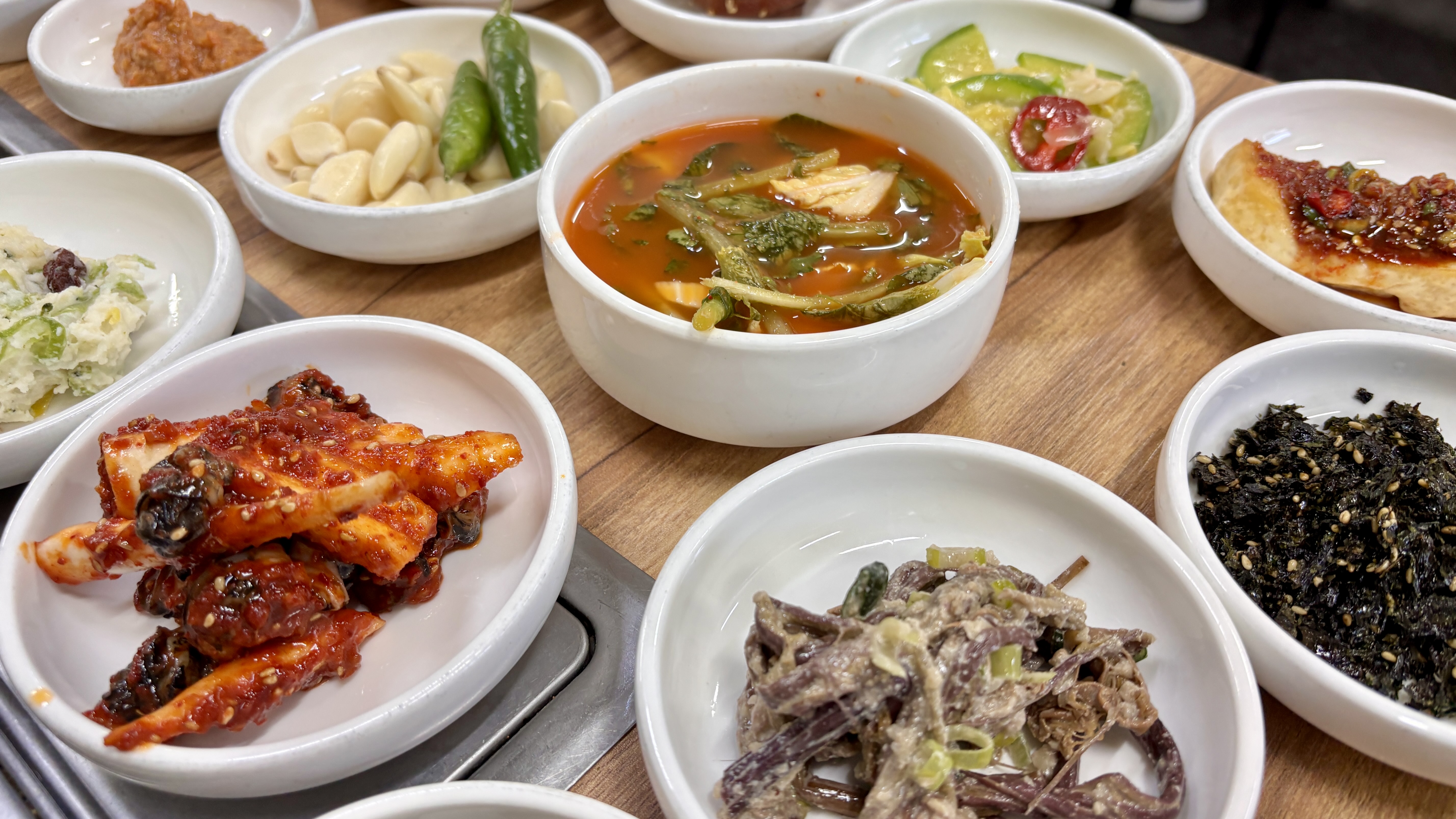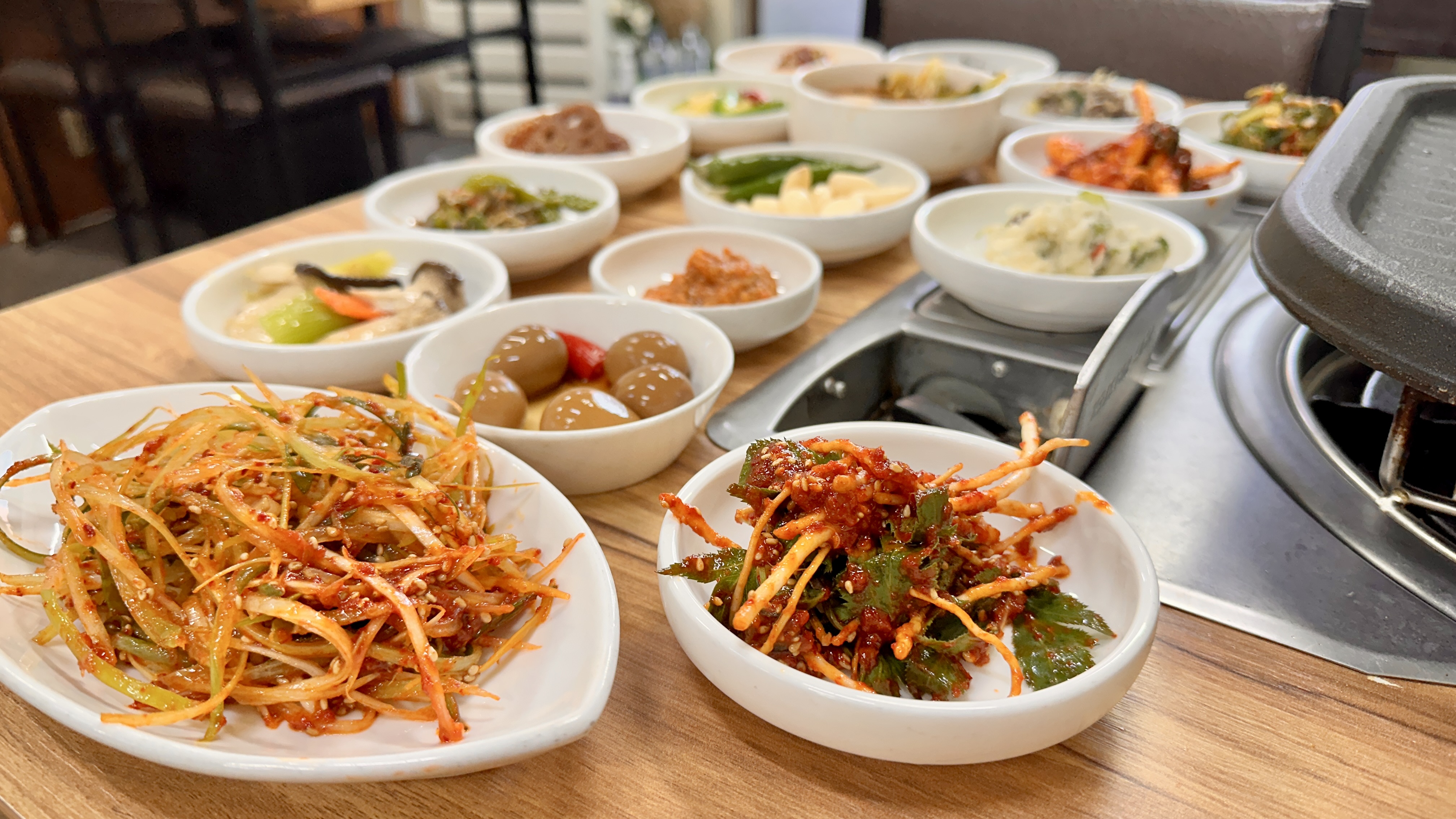가벼운 관악산 무장애숲길 등산을 마친 후 갑자기 찾아온 삼겹살. 관악산 으뜸휴게소에서 지도 앱으로 확대 축소를 해가며 반경을 뒤지다가 눈에 들어온 건, 봉천동의 어느 백반 겸 고깃집이었습니다. 얼추 보니 오호라, 반찬의 가짓수도 가짓수인데 음식 솜씨가 있어 보였다고 할까요? 찬들 구성하는 색감(재료)의 조합에 눈이 갔던 것 같습니다.