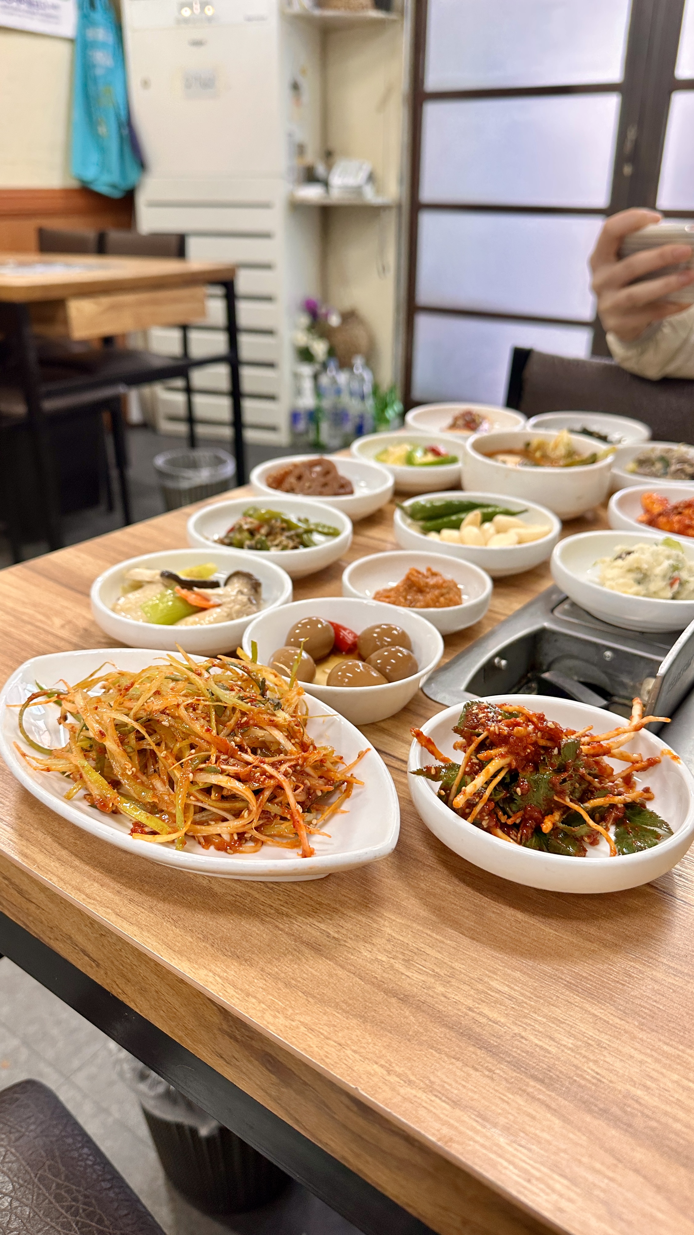 자, 된장찌개까지 세팅이 완료되면 대략 이러한 모습입니다. 보기만 해도 기분이 좋아질 것 같지 않습니까? 좋은 집을 발견했을 때 느껴지는 기분에 잠시 녹아내렸습니다. 수동으로 찾아낸 필자가 대견스러운 순간이기도 했습니다.