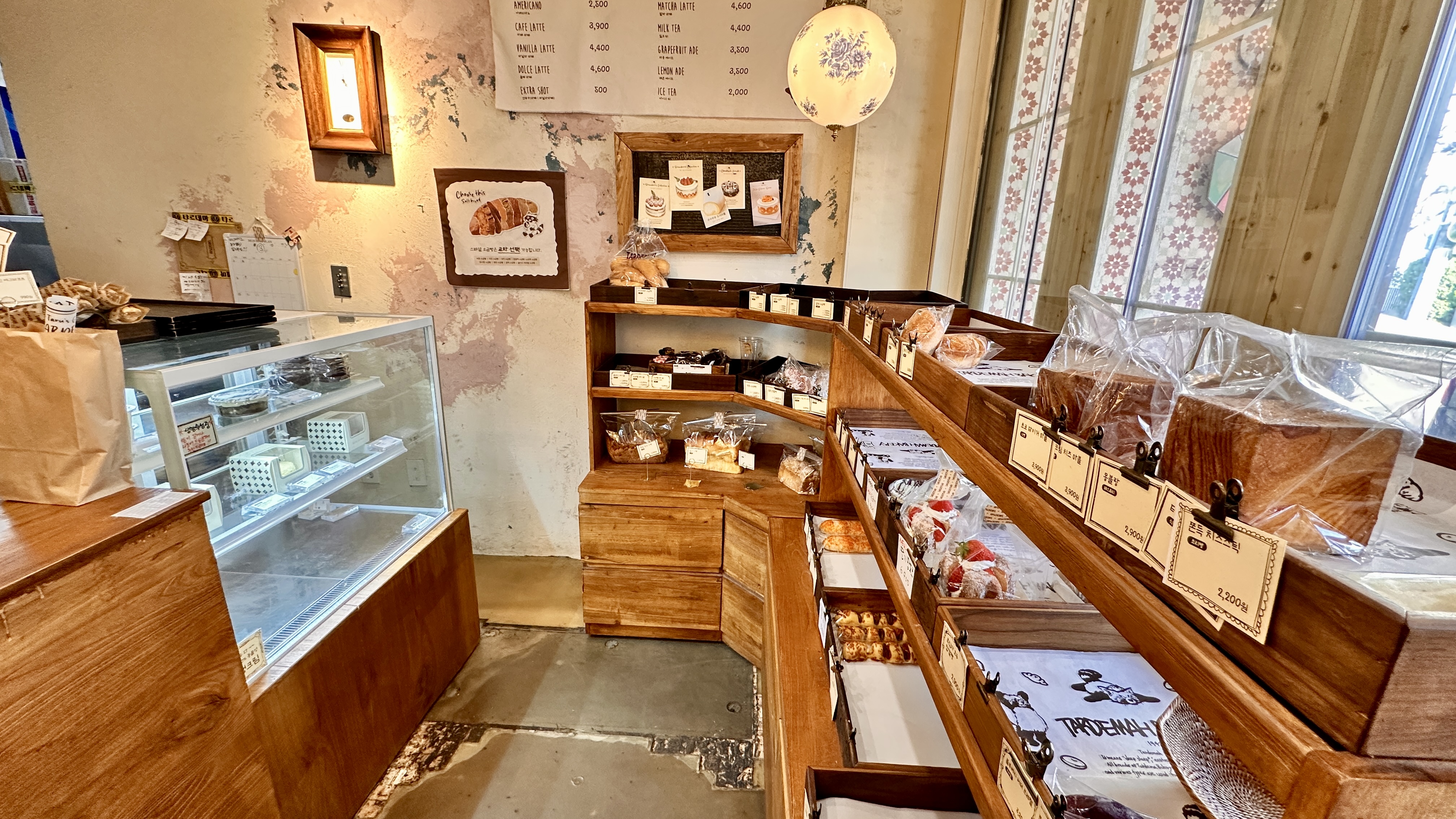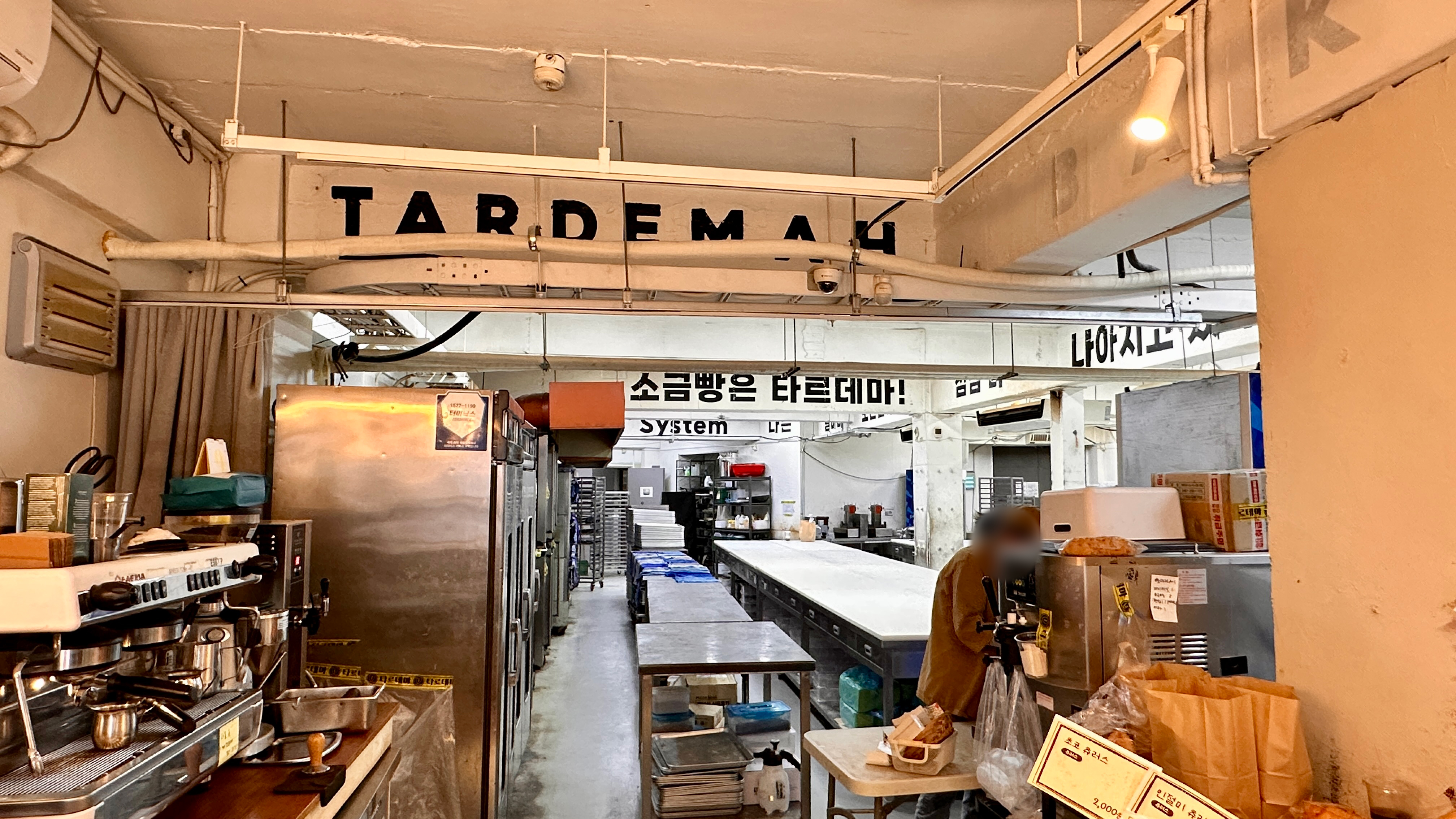 - 진열대가 한눈에 담기는 협소한 공간으로 포장만을 위한 베이커리다. (지점들로 빵을 보내기 위한 생산의 역할도 하는 듯했다.)