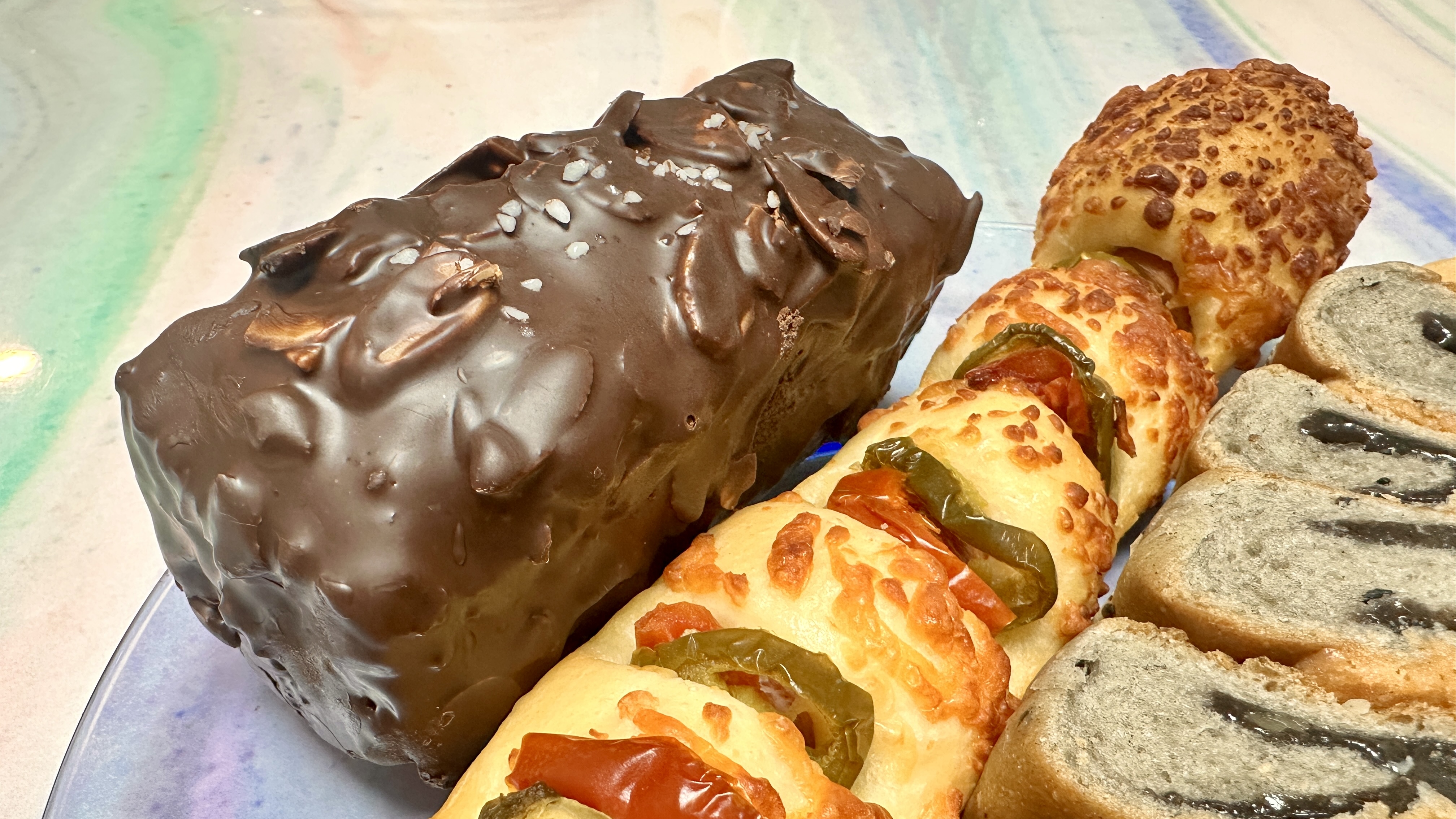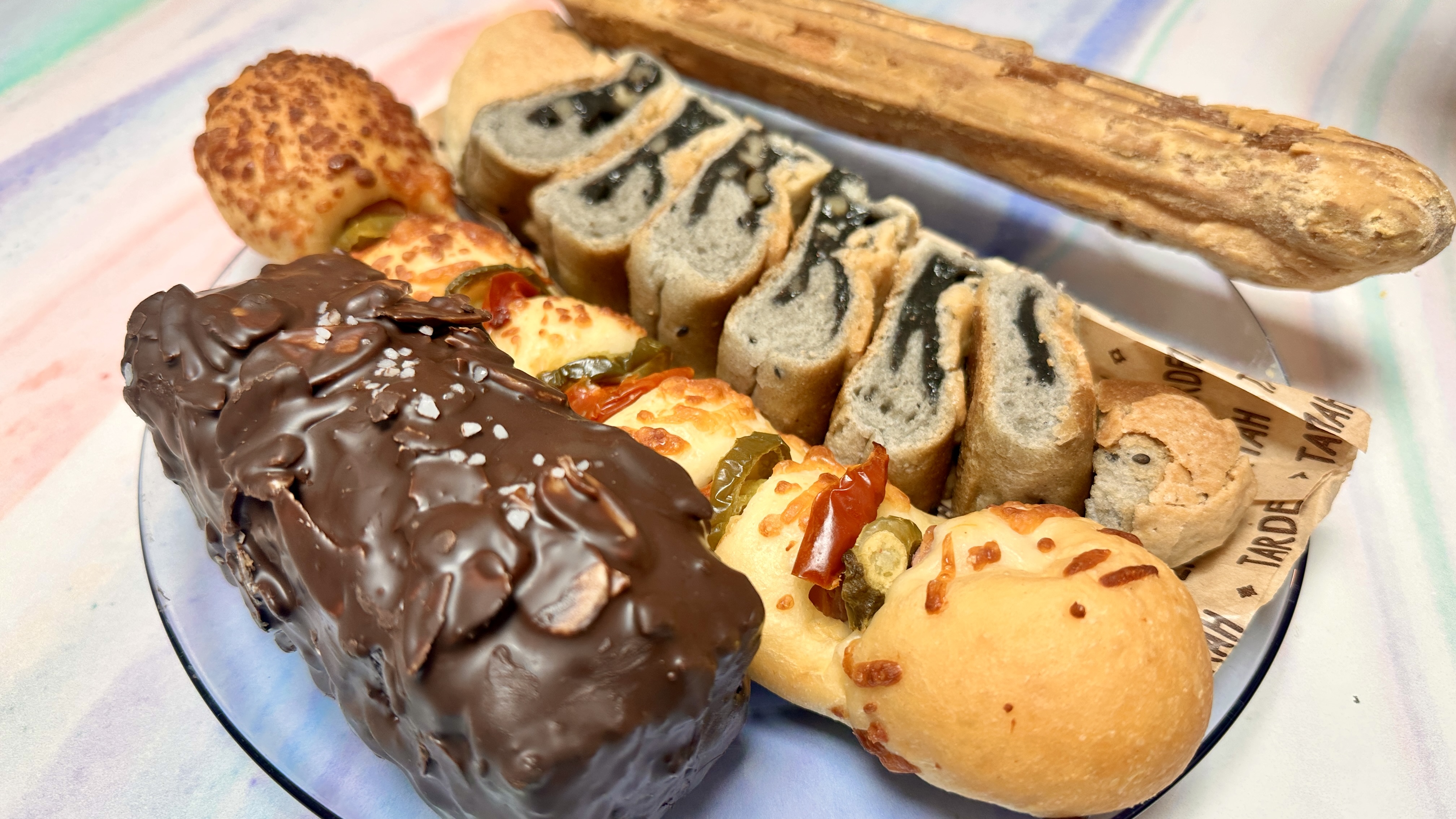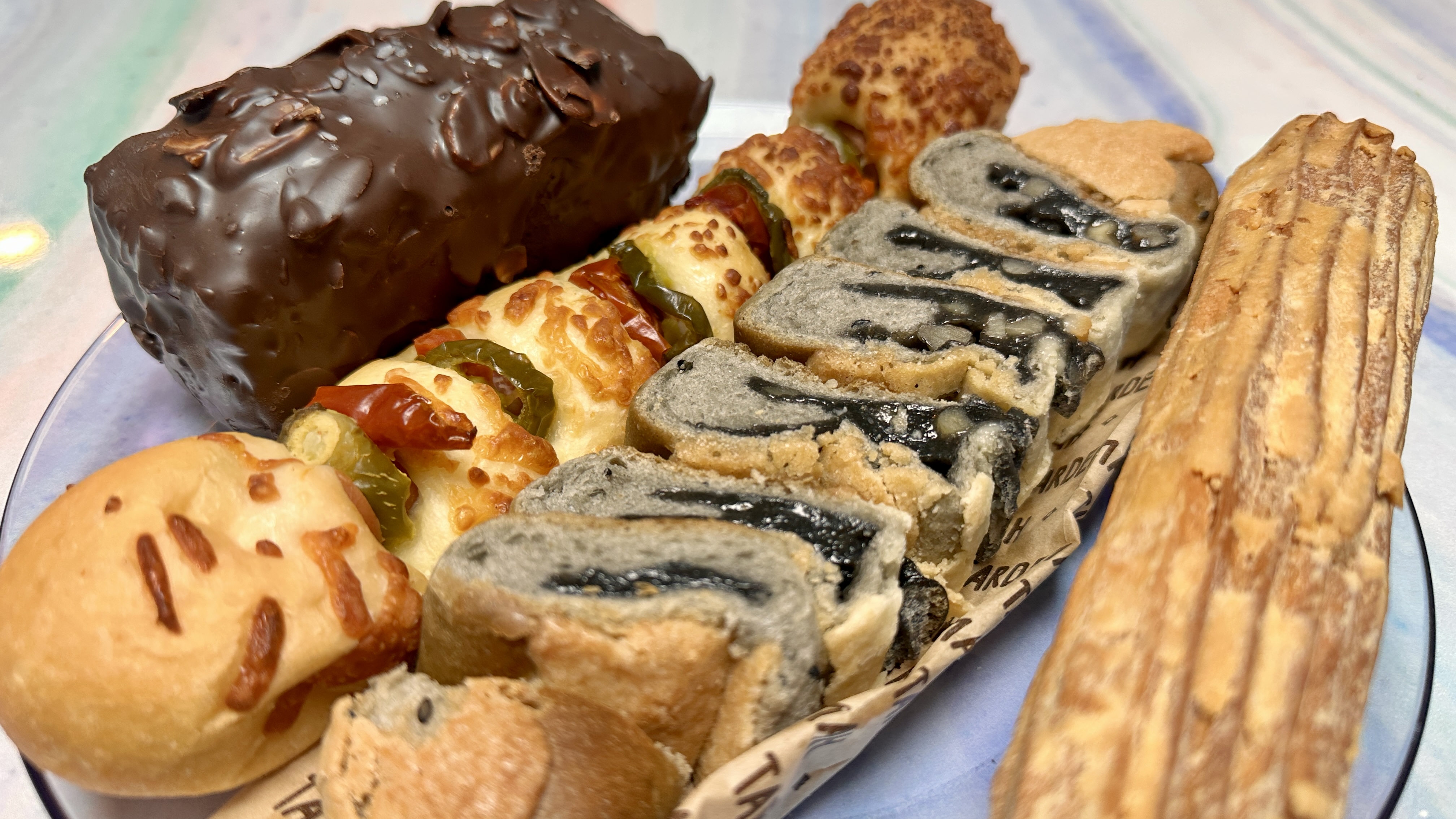 이렇게 뜨문뜨문 남아 있는 녀석들을 담는 수준이었는데요. 시그니처로 보이는 소금빵, 양이 많은 묶음만 남아 우선 패스하기로 합니다. 할토소 (할라피뇨 토마토 소시지), 흑임자 찹쌀 호두빵, 오! 퐁당 쇼콜라 파운드라는 3인방을 우선 담았습니다. 미안하지만 오늘의 패잔병들인가? 하고 담았네요. 이것 또한 미리 스포하자면 쇼콜라 파운드는 정말 맛있었는데, 왜 남아있지? 했습니다.