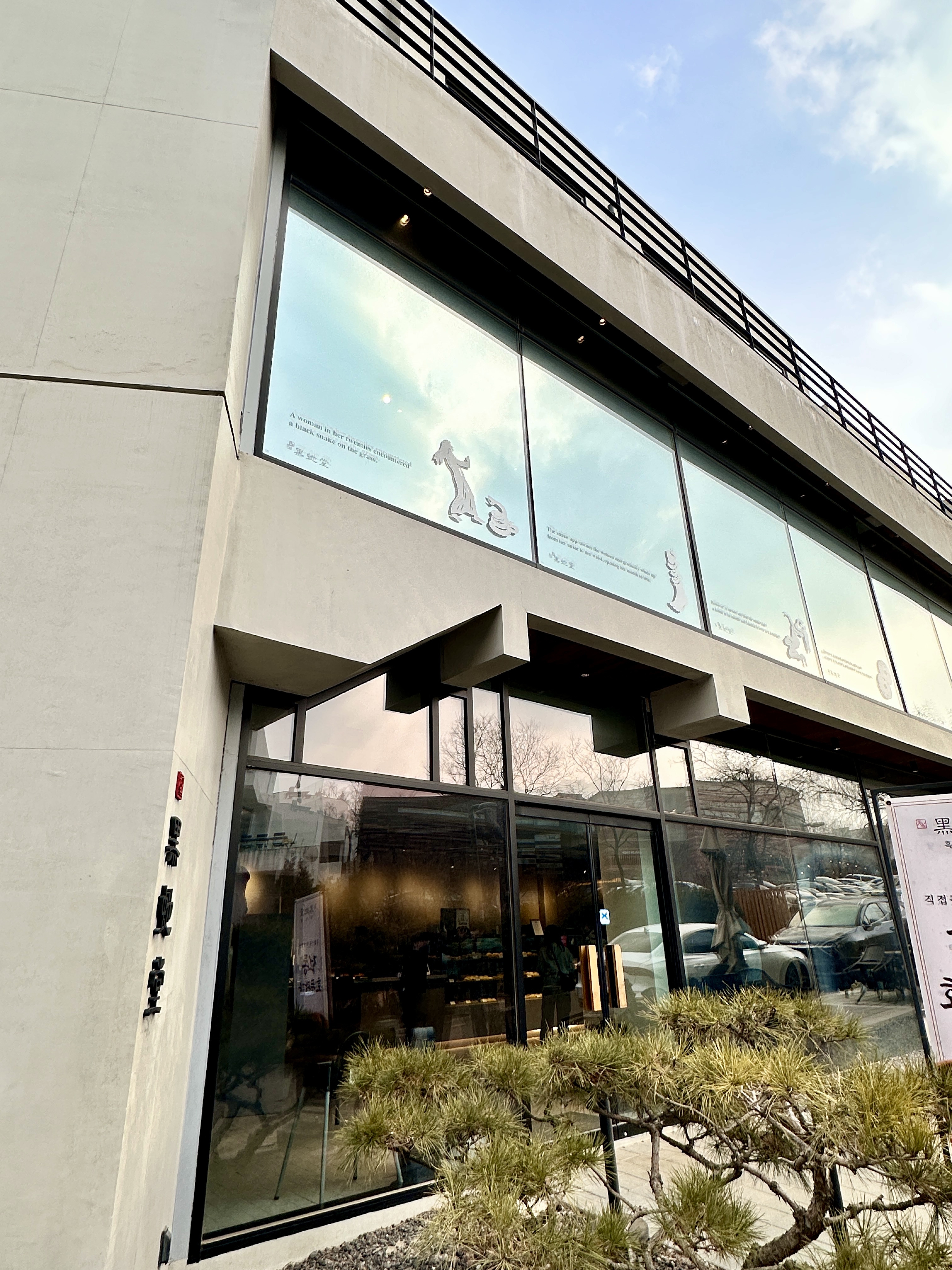 흑사당, 로고와 한자를 보고나서 검은 뱀이란 뜻임은 알 수가 있었는데, 왜 뱀을 모티브로 삼았는지 모르겠네요. 가게의 유리로는 검은 뱀이 집에 침입해서 여인을 위협하다가 도넛을 건네줬다는, 그런 반전의 이야기도 적혀 있었습니다. 치명적인 달콤함을 강조하고 싶었던 건지 모르겠네요. 단어만 보자면 디저트 카페보단 무협지의 문파 같은 느낌도 납니다.
