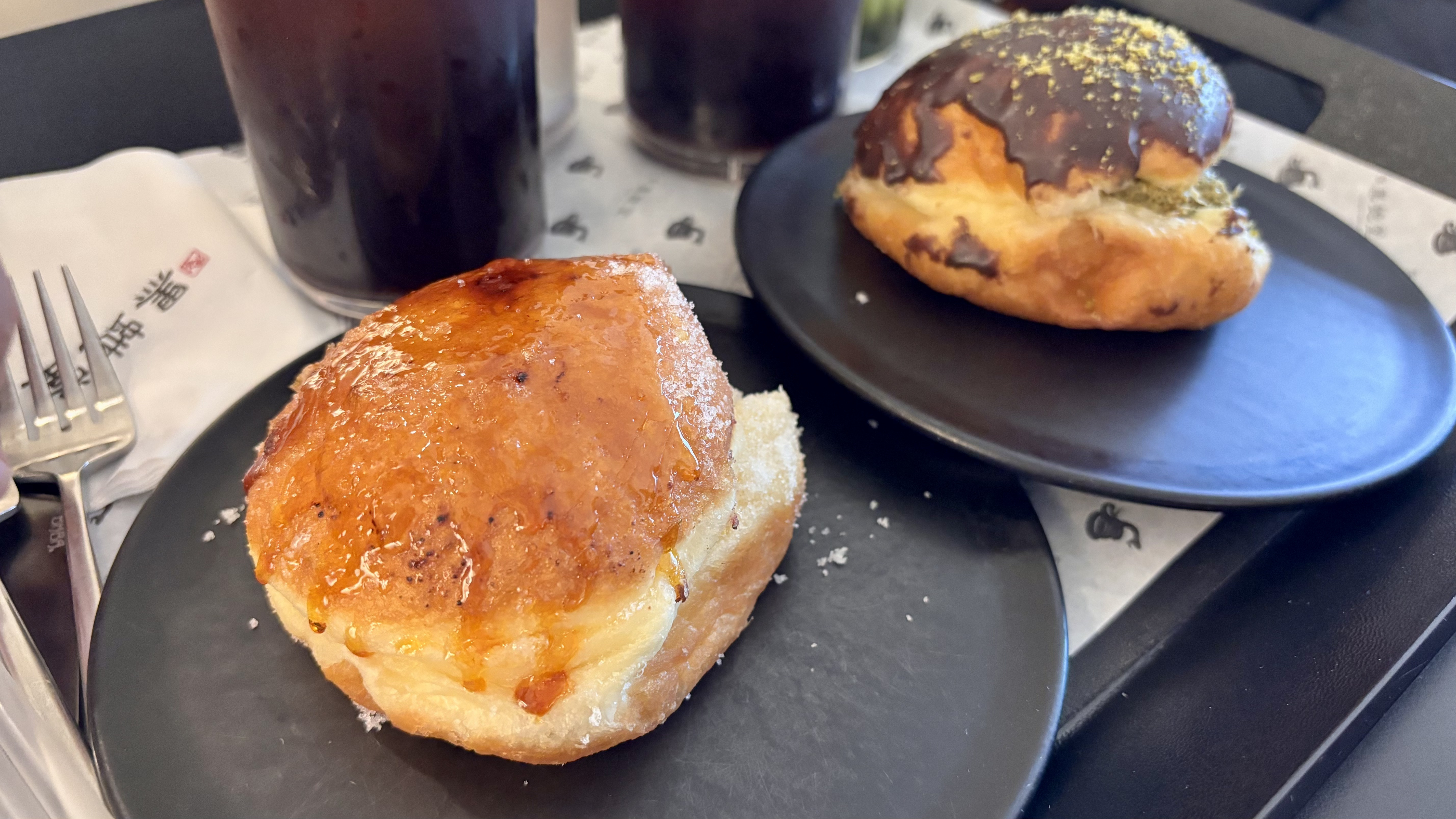 2층으로 착석해 시식의 시간. 아베베에서 만난 도너츠와 모양이 흡사합니다. 가운데가 뻥 뚫린 도넛만(또는 던킨 같은 것만) 알다가 이런 류의 도넛을 최근 알게 되었는데, 일반적인 빵보단 반죽 밀도감이 있고 식감은 보다 크리스피하단 점에서 차이가 있습니다.