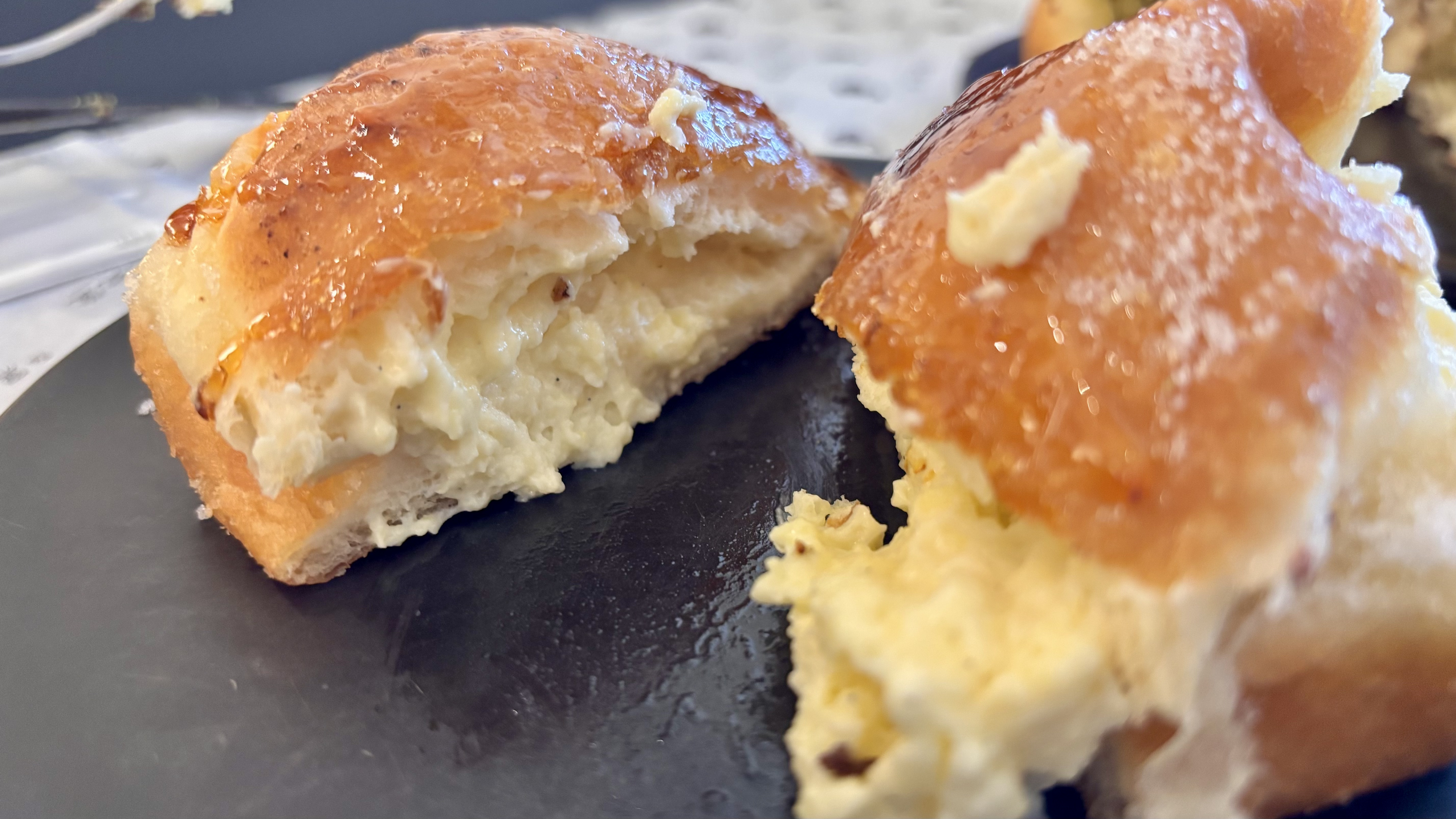 맛을 보는데 커스터드 크림이라 농후한 당도. 중간중간 설탕 입자가 짜글짜글 씹히는 느낌인데, 크. 필자는 이런 당도를 띵한 당도라 표현하곤 합니다. 분명 끌리는 맛이고 요새 강한 단맛을 찾기 시작해 곧잘 먹긴 했습니다. 다만 비교군과 경험이 적어 요즘 세대처럼 정말 맛있다라 자신 있게 외치진 못합니다.